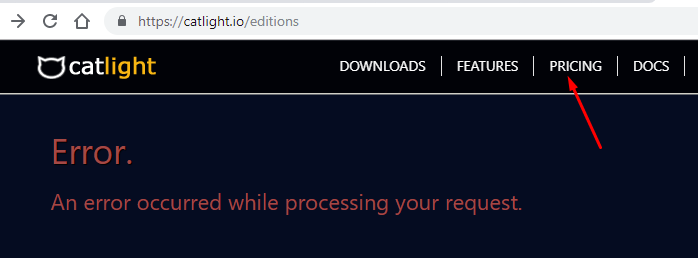 1 1 person supports this Solved Pricing page returns error 500 Seen in Windows10/Chrome, both normal and incognito modes maxnk Posted · Updated Follow
