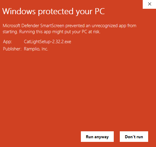 Windows Defender Smartscreen blocks CatlightSetup-2.32.2.exe